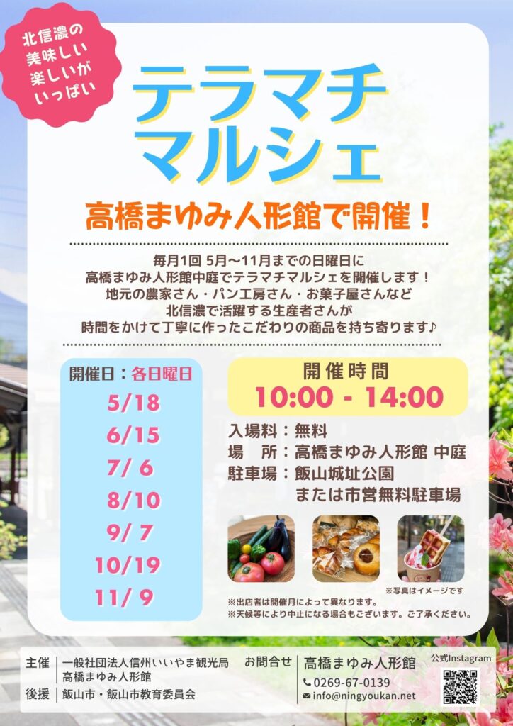 From May to November, the courtyard of the Mayumi Takahashi Doll Museum comes alive every Sunday with the Teramachi Marche!