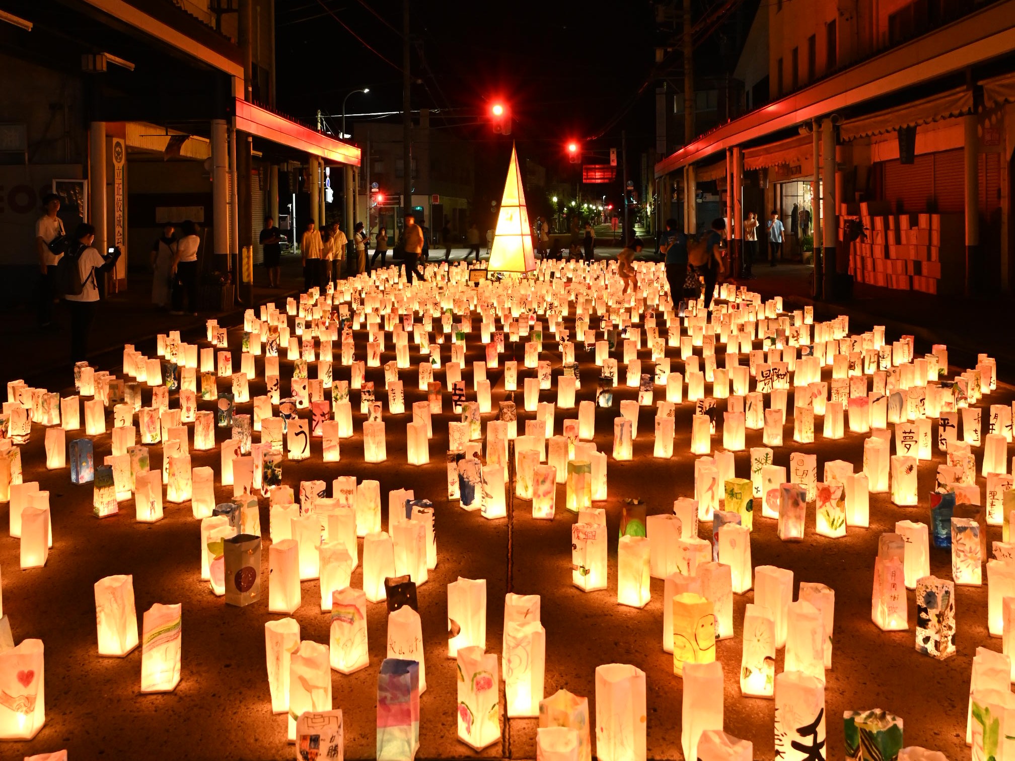 城下町・飯山のまちなかに浮かぶのは、1万を超える灯籠のあかり。