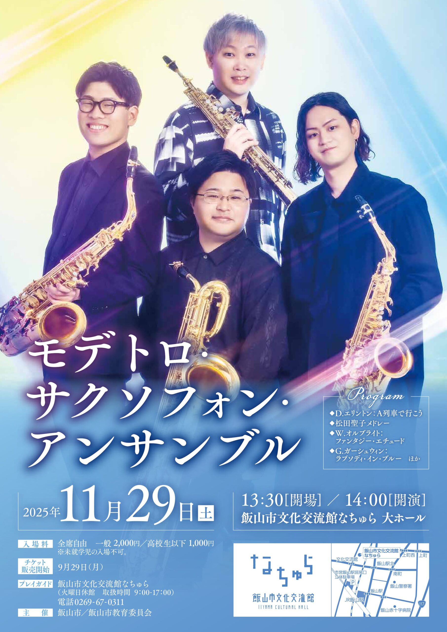 聴衆とともに「時空を遊ぶ」サクソフォン・カルテット、モデトロ・サクソフォン・アンサンブルが飯山に登場!