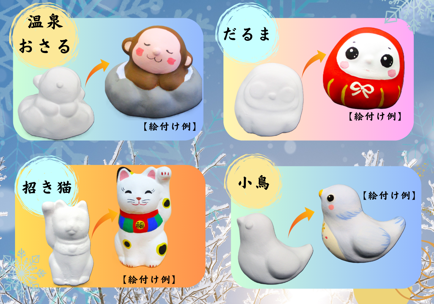 飯山駅観光案内所で開催される「中野土人形の絵付けワークショップ」では、江戸時代から伝わる郷土玩具に色をつけ、世界でひとつだけの作品をつくる楽しさを味わえます。