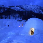 雪で作られた大小さまざまな“かまくら”が並び、夜には灯りがともり、まるで物語の中に迷い込んだような幻想的な景色に。